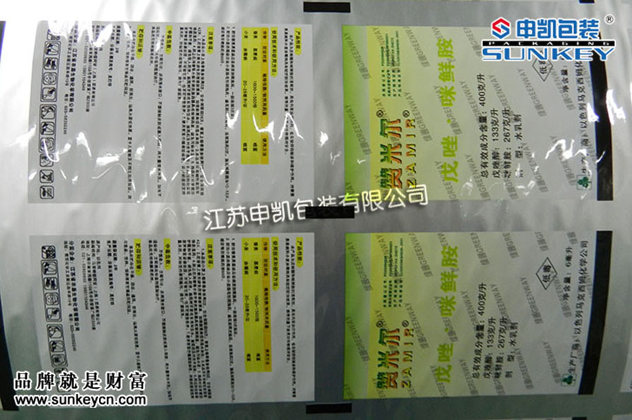 說明:彩印農藥鋁箔包裝材質一般是由PET/AL/PE組成,經過印刷-檢品-復合-分切多層工藝。(農藥復合卷膜我們有專門的研發(fā),根據包裝的產品不同經過測試選定包裝)