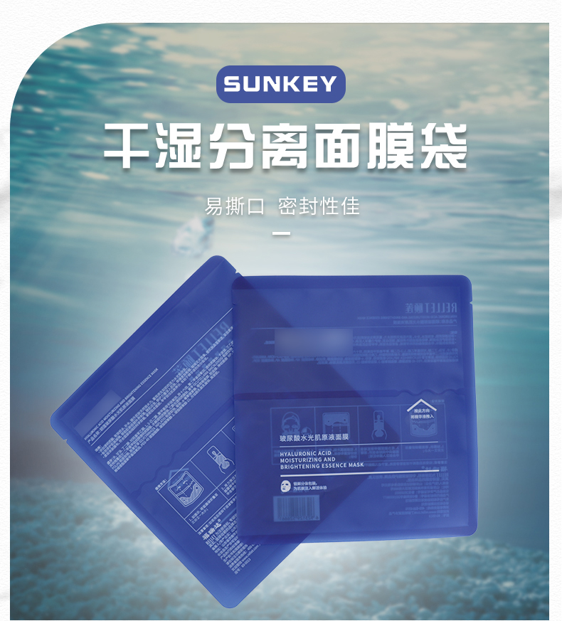 產(chǎn)品材質(zhì):新料 名稱:干濕分離面膜袋 厚度:12絲 規(guī)格:按需定制 用途:日化品包裝 膜液分離的干濕分離面膜袋技術(shù)可以,使精華液可以獨(dú)立包裝,保證穩(wěn)定性更優(yōu)的情況下,還能減少某些添加劑的使用。面膜在使用前十幾秒才解鎖“浸泡”,既杜絕面膜紙中化工成分的析出,又能最大程度地保證活性成分的被最大程度地吸收,新鮮程度是傳統(tǒng)浸泡式面膜無法比擬的。